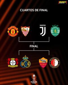 El ganador del duelo entre Sevilla y el United se enfrentará en semifinales al superviviente del Juventus-Sporting. Por el otro lado del cuadro se cruzarán los vencedores del Feyenoord-Roma y del Leverkusen-Union Saint-Gilloise.