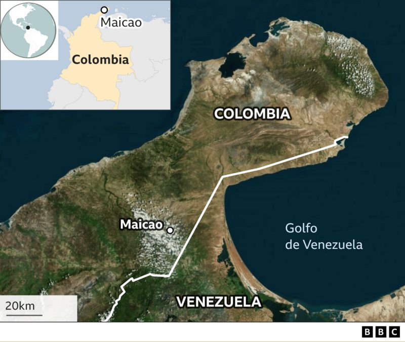La Pista es solo uno de los 42 asentamientos de migrantes que hay en Maicao. En Uribia, un municipio cercano, también hay un refugio en un aeropuerto abandonado en el que viven más de 10.000 migrantes. De los siete millones de venezolanos que salieron del país, poco más de tres millones están en Colombia. Cifras oficiales reportan que unos 200.000 están en La Guajira y casi la mitad de ellos en Maicao. La península de La Guajira es un desierto del tamaño de Haití o Bélgica en el que la frontera entre Colombia y Venezuela se difumina. Más de la mitad de la gente es indígena wayuu, pero también hay una influyente comunidad árabe. La gran mayoría de la población es binacional: hizo una vida del intercambio fronterizo.