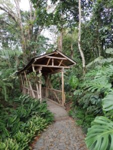 En su recorrido a través de seis (6) estaciones, cuenta con una extensión total de 4.6 hectáreas en las que hay una mezcla de naturaleza, ciencia y diversión. En este jardín existen unas 700 especies. En el orquidiario hay alrededor de 120 especies de orquídeas nativas y en el heliconario se encuentra gran diversidad de plantas exóticas de gran belleza.