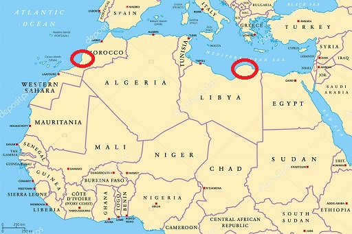 ______ El norte de África fue sacudido por dos eventos naturales de grandes proporciones en los últimos días. La situación de los dos paises es muy grave, en Libia es tan devastadora como en Marruecos. Organismos internacionales y paises de todo el mundo se han volcado a prestar las ayudas humanitarias necesarias para ir superando la gravedad del actual estado.