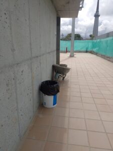 Todos los espacios complementarios de la obra están en obra gris, desocupados sin cielos rasos, tampoco puertas ni acometidas de energía. Todo está manga por hombro y con riesgos para la integridad de las personas que por allí deambulan, especialmente los niños, compartí esta observación con una periodista de un medio local, ella encogiéndose de hombros dijo que era responsabilidad de los padres (¿?).