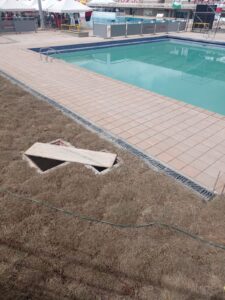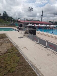 Doce horas después caímos en cuenta nuevamente, que a tipos como estos no se les puede creer, es vergonzoso el estado del cacareado Complejo acuático de Pereira, no lo alcanzaron a terminar y aún trabajan a marchas forzadas. Algunas áreas plantean un riesgo de vida para los asistentes y deportistas: Accesos sin demarcación, rampas sin barandas, baños sin terminar y sin puertas, huecos tapados con tablas, prados sembrados a última hora. Duchas, escaleras, camerinos, acceso a las plataformas de clavados a media obra, mayas de polisombra tapando obras complementarias que están muy crudas alrededor y cintas de demarcación que fueron puestas a última hora, sobre las 10 am, para identificar y cerrar el paso a zonas de alto riesgo por personal de bomberos.